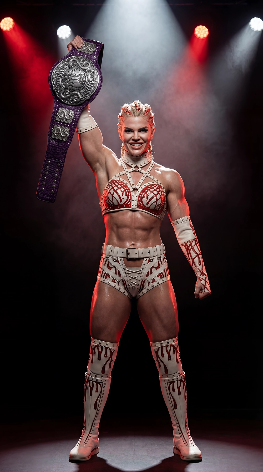 Coming at the heels of her victory, she was tasked to face Corey Black in a non-title champion versus champion match. She won via disqualification, after Azurine Vebbins exacted a measure of revenge. Under a hood, she delivered a stunning German suplex to Gorgo, sending her backward into a table.